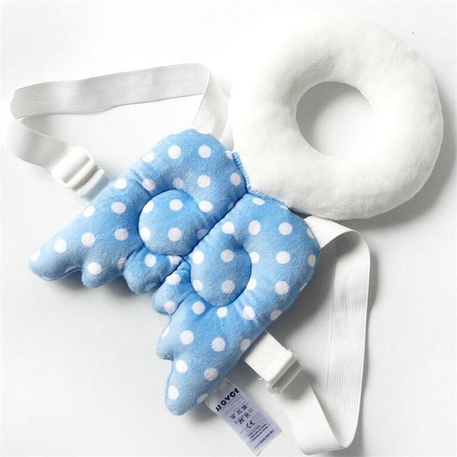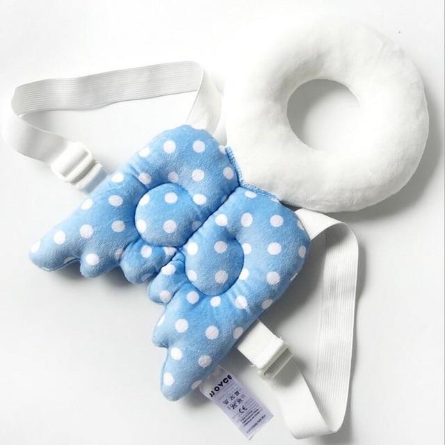 Our Baby Halo Pillow keeps babies' heads protected while they move around. The pillow straps onto your baby like a backpack and offers a cushion for their upper back and head. It's perfect for protecting babies in case of falls or accidents.