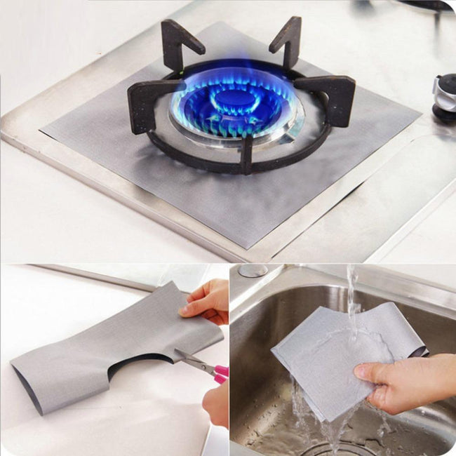 These Reusable Stove Protectors keep your stove clean while you cook. Use them to cover the area under the burner on gas stoves to catch all spills and splatters. Once you're done cooking, just rinse and reuse! No more endless scrubbing to get spills off of your stove.
