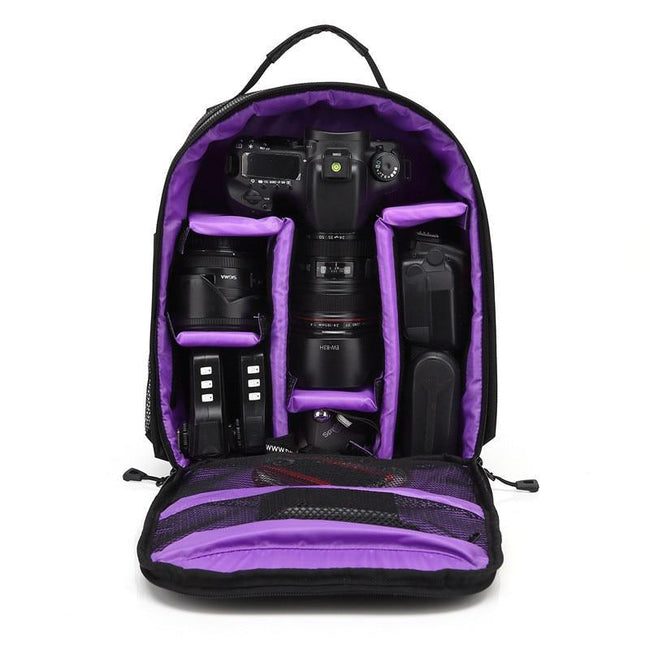 Keep your DSLR safe with our Camera Bag. The bag has secure compartments for all of your camera parts, from the camera itself to all of your lenses. It even has a mesh pocket to carry your laptop or tablet. To top it all off, the bag is completely waterproof so your equipment stays safe and dry!