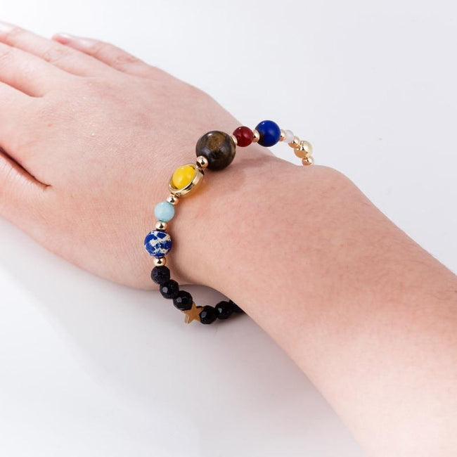 Our Athena Galaxy Bracelet puts the solar system on your wrist. The cool design includes beads that are specially crafted to look like the planets, including Earth, Venus, Saturn, and more!
