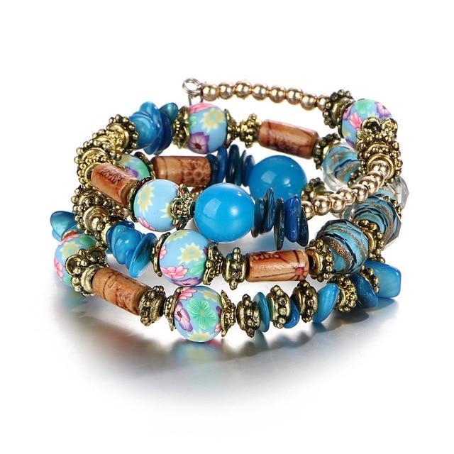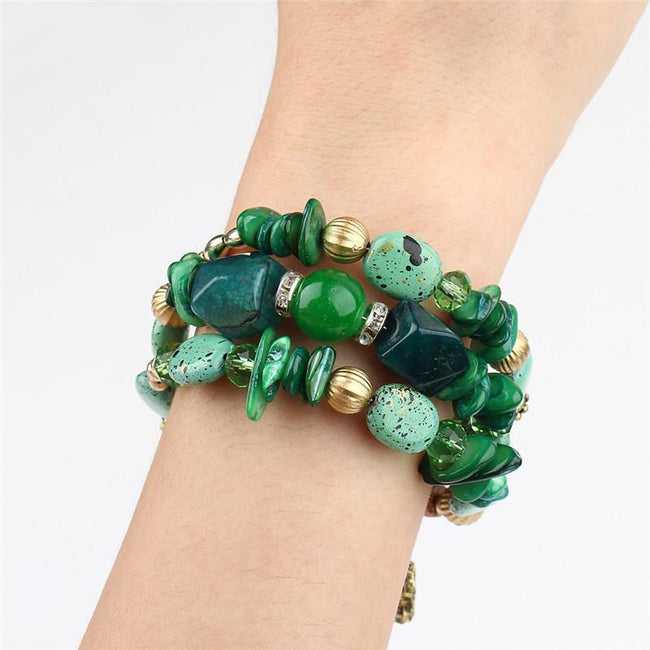 Make a colorful and stylish statement with our Bohemian Bracelet. The bracelet is adorned with colorful stone beads, stunning crystals, and fun charms to match your fun, boho style.