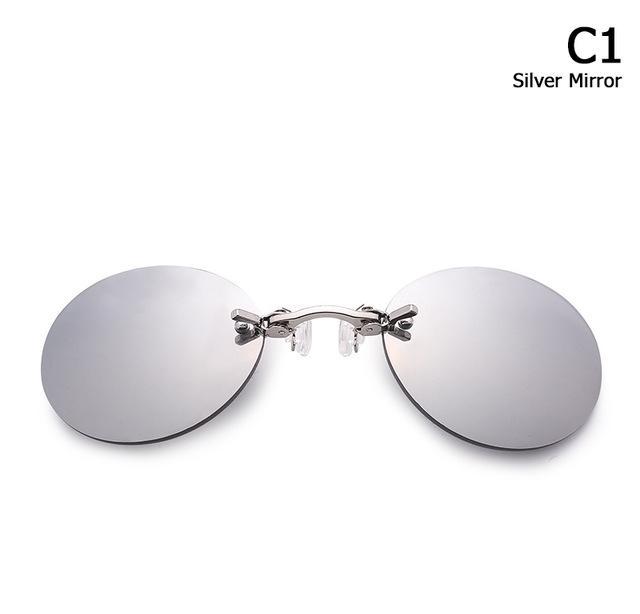 Our Clamp Glasses let you embody the cool, edgy style seen in the classic science-fiction film. The rimless sunglasses feature mirror-style lenses and an adjustable bridge for optimum comfort.