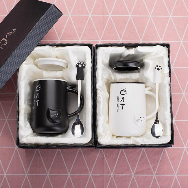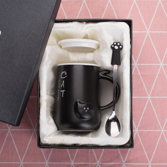 Enjoy your favorite drinks in large amounts using our Coffee Cat Mug! With its 400ml capacity, you get twice as much as an ordinary cup can handle. The design and built is also high-quality! It is built to surely stand extreme heat. It is also one of the best gift ideas to give anyone for its cute packaging, matched by a paw-stirring spoon and a cover lid which can also double as a saucer/stand.