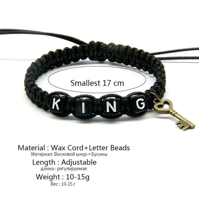 - Set comes with one "KING" bracelet and one "QUEEN" bracelet