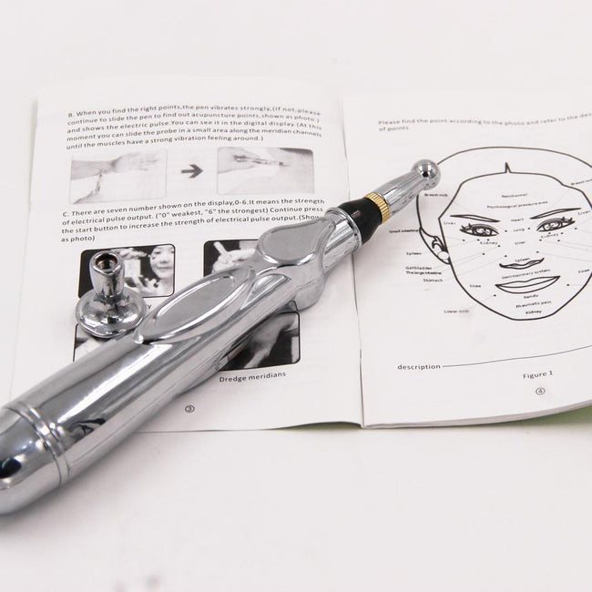Our Electric Acupuncture Energy Pen uses a fusion of biotechnology, massage, and acupuncture to promote relaxation and healthy circulation. Use the pen to gently shock specific pressure points to help with muscle relaxation or stimulation as well as cure minor ailments, such as hiccups, trouble sleeping, and minor aches and pain.