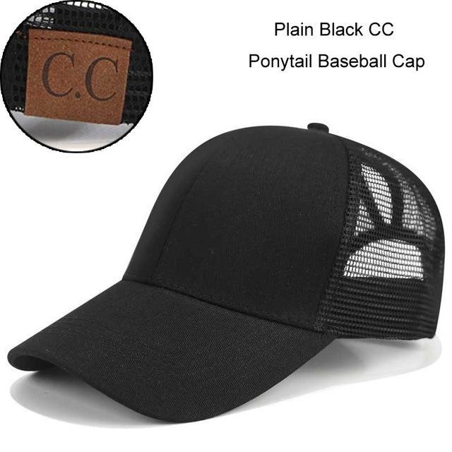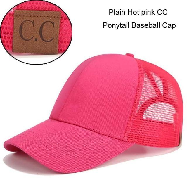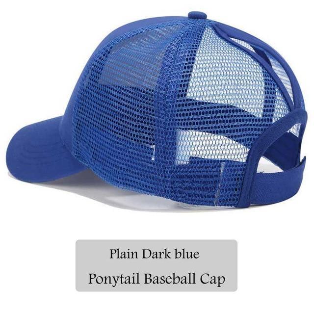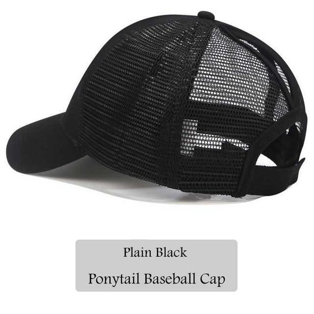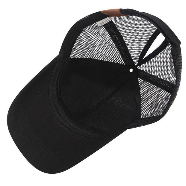 Our Glitter Pony Cap lets you wear your hair up while keeping the sun out of your eyes. The trucker style baseball cap features an adjustable velcro back as well as a slot for ponytails.
