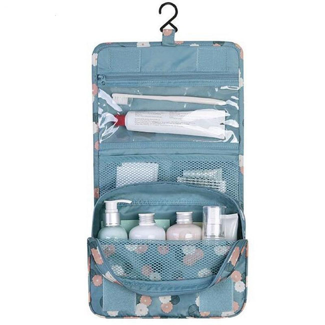 Our Hanging Beauty Bag keeps your makeup nice and organized while you travel. The makeup bag can hang almost anywhere and easily unlatches to reveal all of your products. Use it to keep makeup, brushes, and skincare products safely organized while you travel or to store your makeup products at home.