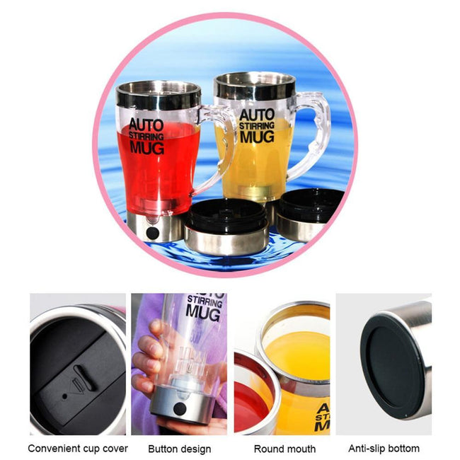 Our Hurricane Mug is a self-stirring tumbler cup. The mug will stir your drinks for you at the push of a button. It's made in a leak-proof design and is double insulated to keep your drinks warm or cold. Perfect for coffee, protein shakes, powder drinks, and more!