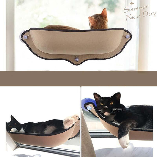 Our Kitty Daybed gives your cat a great view of the world. It attaches to your window so your cat can relax while looking outside. It's sturdy, comfortable, and so much fun!