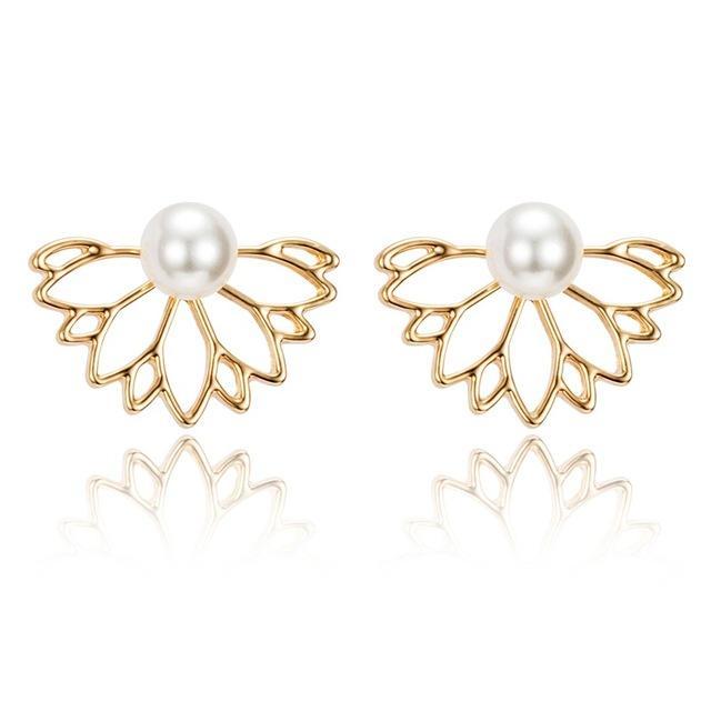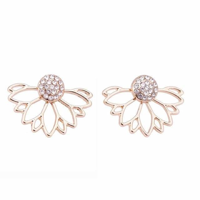 Our Lotus Earrings feature a stunning stud front and a beautiful lotus jacket-style backing. Choose from crystals or pearls to complete your look.