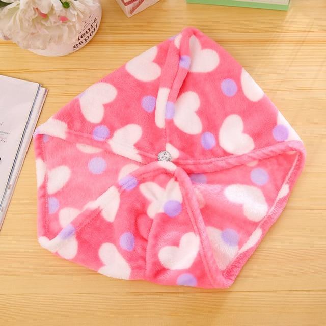 Our Magic Hair Wrap is a microfiber hair towel to easily and quickly dry your hair. It comes with a button and string to tie and keep the towel in place. The towel is so easy to use like wearing a cap.