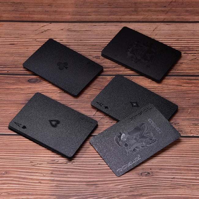 Our Matte Black Cards will have you looking like the ultimate card shark. The standard deck features high quality waterproof cards in a luxurious matte black finish.
