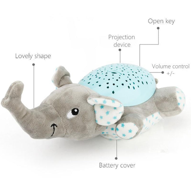 Our Musical Night Friends are a stuffed animal, light projector, and music box all in one! They're the perfect musical night light for children. Simply turn it on at night and watch as it projects glowing stars around the room and sings your child to sleep.