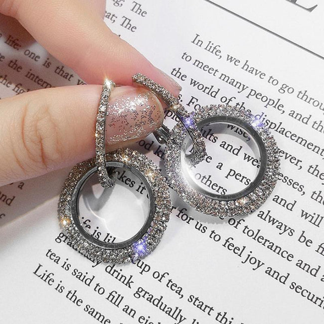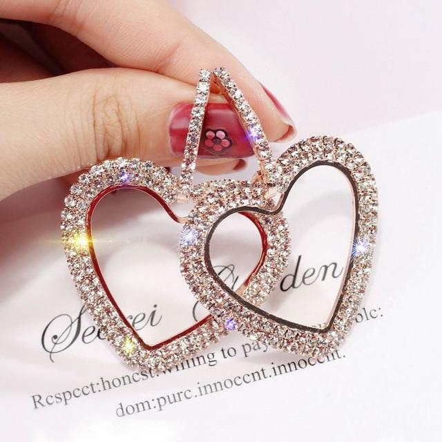 Add some sparkle to your look with our Rhinestone Geometric Earrings. The dropped earrings are covered in dozens of dazzling rhinestones. Choose from hoops, hearts, or triangles to complete your look.