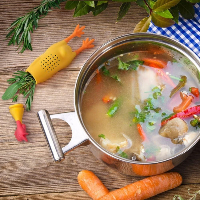 Get flavor-packed, delicious food with our Rooster Fuser. The chicken-shaped infuser makes it easy to infuse herbs and spices into your food without adding the leaves and peppers themselves. Simply place your herbs inside the infuser and let it sit in your food while it cooks for amazing flavor!