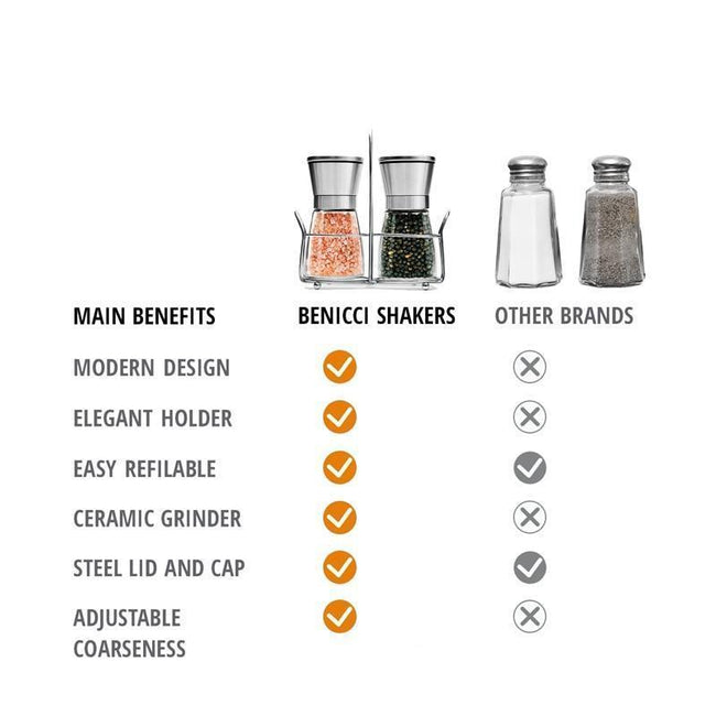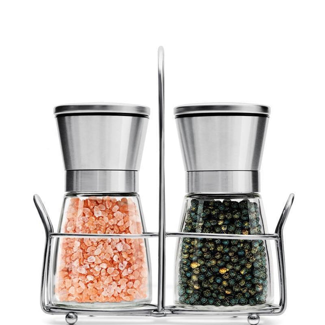 Upgrade your kitchenware with our Salt N' Pepper Dispenser. The set comes with two glass and stainless steel shakers for salt, pepper, or other seasonings. The shakers comes with their own stainless steel storage stand for a simple yet classy effect.