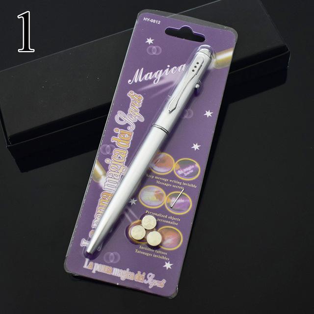 Our Secret Scribe writes secret messages. The miniature pen writes in UV ink and looks invisible to the naked eye. Use the UV light at the end of the pen to reveal the secret message. It's perfect for writing in your diary, passing notes to friends, or giving yourself cool, UV tattoos.