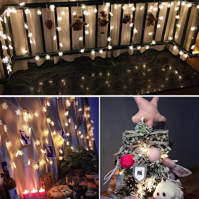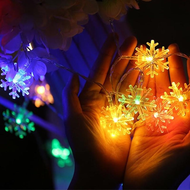 Decorate your home for the holidays with our Snowflake Stringers. The string lights are adorned with 40 LED miniature snowflakes. The extra long length makes these lights perfect for hanging around the house or for decorating your Christmas tree.