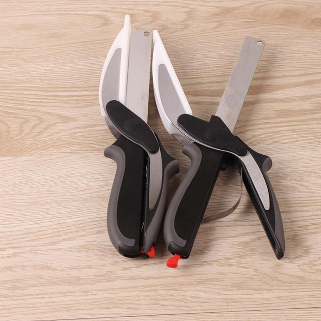Our Super Scissors are multi-functional and triple as scissors, a knife, and a cutting board all in one! The stainless steel scissors are perfect for cutting vegetables, fruits, meat, cheese, and more.