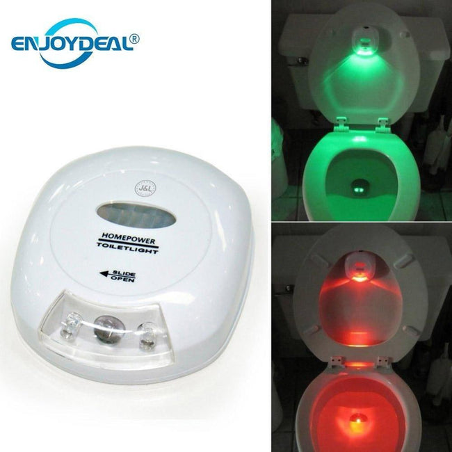 Our Toilet Night Light helps you do your business while in the dark. The LED light attaches to the toilet lid and shines down on the toilet seat every time the lid is lifted. It even shines different colors to let you know when the toilet seat is up or down!