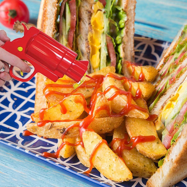 Our Topping Gun is a new and fun way to serve toppings like Mayo, Cheese, and Ketchup! Even picky eaters will be amused by the design. This is a great topping for fun barbecue parties and events!