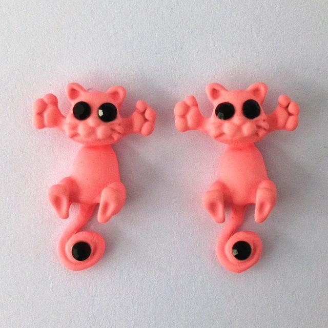 Our Trap Cat Earrings are whimsical and fun! The stud earrings create the illusion that these colorful cats are hanging from your ear. Choose from a variety of cute colors to show off your love for our feline friends!