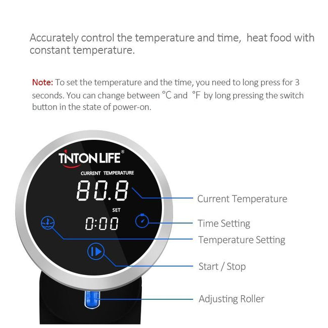Our Ultimate Precision Cooker is the future of cooking. The precision cooker cooks almost anything at a constant temperature set by you. Simply place your food and the cooker into a pot of water, set your desired time and temperature, and let the cooker do the work for you!